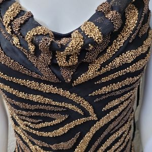 Full Beaded Gold/Black Low Cut Formal Blouse with side zipper.