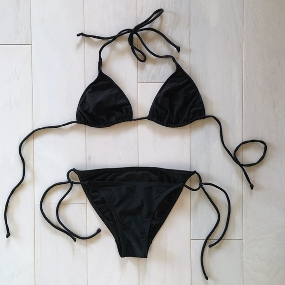Classic basic black bikini! Top ties behind the neck and back; bottom has ties at the hips - super cute!