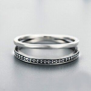"Full CZ Micro Pave Double Layer Basic Style Rings For Woman, HA4189-6