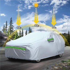 🧿【PREMIUM MATERIAL】- 6 layers car cover is made of heavy duty material. ❶It's great for rainproof snowproofing. ❷High reflective aluminum is good at sunproof and anti-uv, keep the car cool in the summer. ❸Thicker and soft cotton will protect vehicle painting. QUYDDC multi-layer material is much thicker and more durable than other similar products.