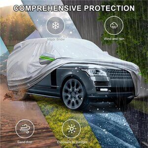🧿【COMPLETE PROTECTION】- No matter hot sun or cold weather. All weather car covers can handle it all. The powerful material keeps your car safe from uv rays, sand, dust, leaves, branches, snow, rain, frost, birds dropping. Important: Always apply the car cover to a completely dry vehicle. Avoid use on wet cars to prevent moisture buildup