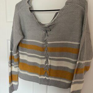 Full Circle Trends Sweater (PacSun) - Mustard and Gray - Super cute lace up back (see photos) - Size L