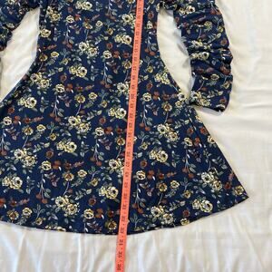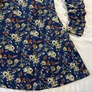 Full Circle Trends Women's Large Blue Floral Long-Sleeve Mini Dress Open Back