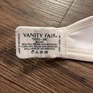 Vanity Fair Full Coverage Underwire Bra. Convertible and adjustable straps with lightly lined cups. Ribbon detail on front.