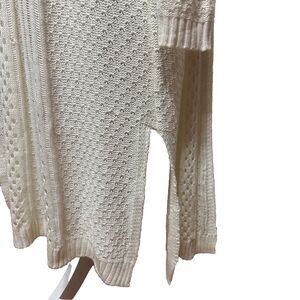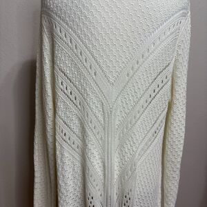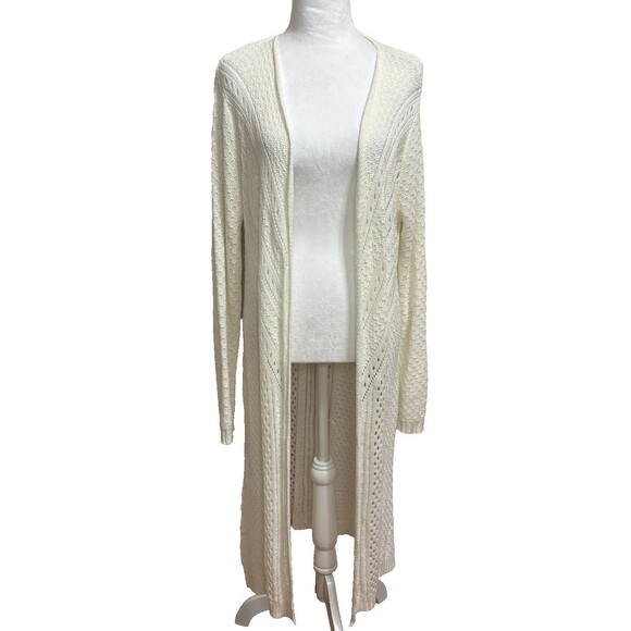 Full Crochet Knit Duster Cardigan Sweater XL Cream Boho Coastal Grandma Cottage