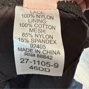 Full Figure Women’s Bra 46DD Black Lace Mesh Wireless Posture Support 2 Row Hook