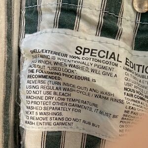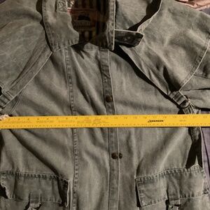 This is a beautiful duster by Koolah. It is lined and has an inside pocket. The collar can be worn up and has a loop and strap for making it snug to keep you warm in cold weather. The snap front has an over flap to keep wind out. The back is gusseted and snaps. The wrists have closures to keep tight for wind and cold. The duster cap has straps that loop under the arms.