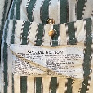 The color is a light teal-green color. Green and white striped inner lining, see tag photos for care and information.
