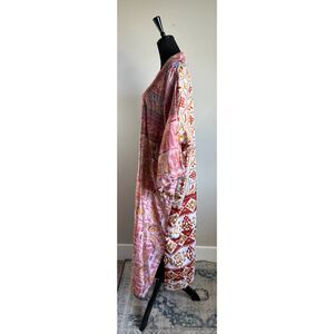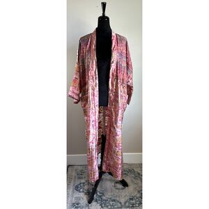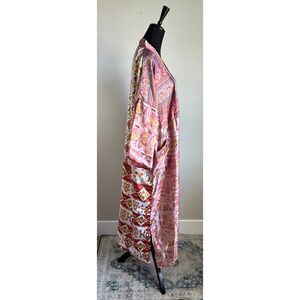 Full Length Patchwork Print Silky Boho Kimono Robe Topper One Size