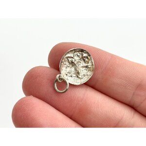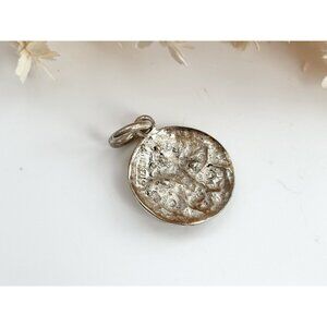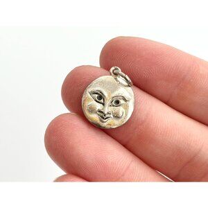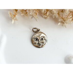 Full Moon Face Tiny Hand Carved Sterling Silver 925 Vintage Pendant | Charm