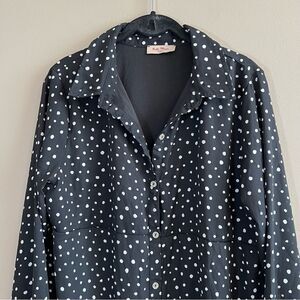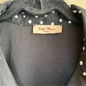 Full Moon Maternity women’s black and white polka dot button down long sleeve dress.