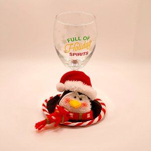 Full Of Holiday Spirits Wine Glass with Christmas Penguin Coaster