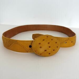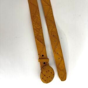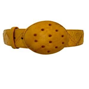 Full Quill Ostrich Leather Belt Mustard Yellow Exotic Belt Western Sz. 36 Unisex