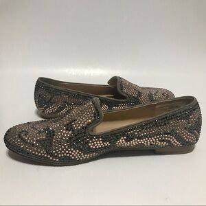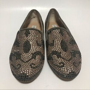 Full Rhinestone Steve Madden Jeweled Bedazzled Loafers. Stones are champagne/rose gold and a brownish gunmetal. Beautifully sparkly in the light! No missing rhinestones, I only wore them a couple of times. Size 8