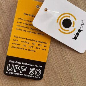 It has the effect of a 50+ SPF suncreen, but without applied chemicals. So this vital protection doesn't wash out-- it's all built into the fabric!