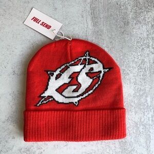 Full Send Mens Beanie Star Logo Knit Red White One Size