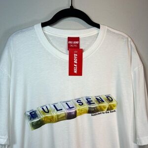 Full Send Nelk Boys Addicted to the Sent Crew Neck T-Shirt White Graphic NEW XL