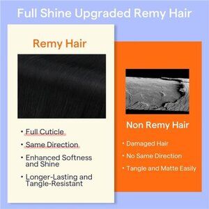 🧿Remy Hair with Enhanced Shine:Crafted from Remy human hair, #1B retains a rich, natural sheen with all cuticles aligned. These soft, silky strands resist tangling, ensuring a smooth and polished finish