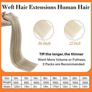 🧿Weft Hair Extensions Human Hair Specification:10":50g;12":80g;14":100g;16"-24":105g; Full Shine human hair weft can meet your needs of different wearing position;You can cut any width you want without falling off the edge hair