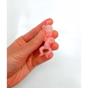 ღღღ This charming miniature baby girl measures a mere 2 inches from her delicate head to her adorable feet, truly embodying the essence of a newborn. At just a few days old, she has been meticulously crafted by Aisite, featuring micro-rooted hair and exquisite details accomplished through the application of special silicone paints, all expertly applied by myself. Each element of her design showcases a commitment to artistry and craftsmanship, including an outfit (varies), which has also been lovingly handmade. Her body, composed entirely of soft silicone, enhances her tender and huggable nature, making her a delightful addition for collectors and enthusiasts alike. To complement this enchanting creation, she will arrive with a bottle, a toy, and a unique outfit, offering a complete package that highlights her meticulous design. This exquisite doll captures the magic of infancy in a way that is sure to bring joy to anyone fortunate enough to welcome her into their collection. ღღღ