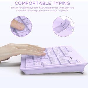 [Comfortable and Smooth Typing] Keystroke is quieter compared to most of keyboards. Concave keys design better fit fingertips. 2 foldable stands at the back of keyboard to raise the wireless keyboard up and let the keyboard tilt to a comfortable angle for user to reduce hand stress.