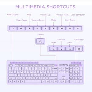 [Full Size Wireless Keyboard] 12 Function Keys and 14 multimedia hotkeys provide great convenience for entertainment and work.(Note: Some FN and multimedia keys may not work on Mac OS). One button and instant access to media control: music, play/pause, volume, internet, email, homepage, etc. Greatly save your time.