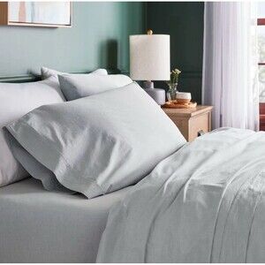 Full Threshold 250 Thread Count Organic Cotton Percale Sheet Set - Blue Chambray