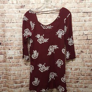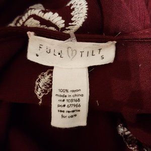 FULL TILT 100% Rayon Burgundy Floral Tunic Size Small Pit to pit 17 across Length 30 4656