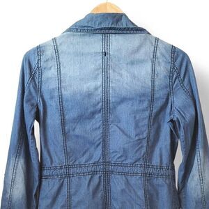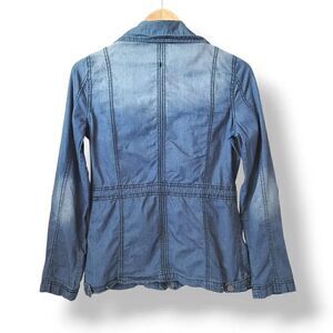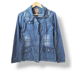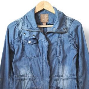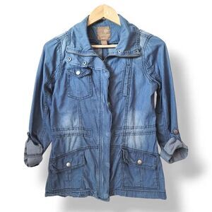 Full Tilt Army Utility Lightweight Denim Roll Tab Jacket in Medium Wash Size S