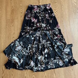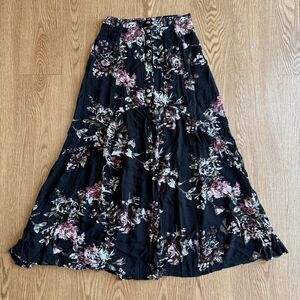 Full Tilt Black and Pink Maxi A-Line Skirt with Slit
