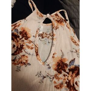 Full Tilt Boho Tank Womens Sz S Pink Floral Rayon High Neck Ruffle Keyhole Back