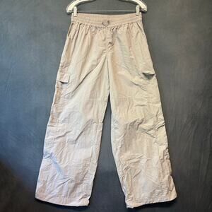 Full Tilt Cargo Wind Pants Women’s M Beige Wide Leg Utility Nylon Y2K Streetwear