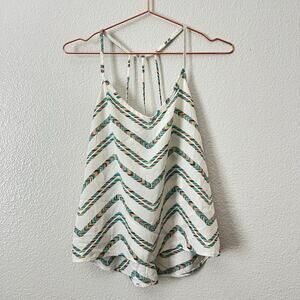 Full Tilt Chevron Stripe Print Strappy Back V Neck Tank Top ivory green brown, Size M. Good used condition.