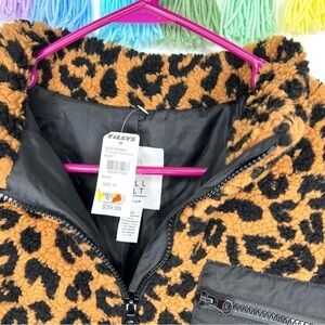 Title: Full Tilt Cozy Wubby Faux Shearling Sherpa Cropped 1/4 Zip Leopard Cheetah Animal Print Pullover Popover Size Medium NWT