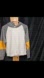 Stylish crew neck sweater. Features gray and yellow color blocks. Comfortable and trendy design.