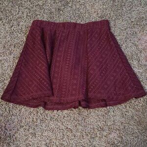 Full Tilt Lace Medium Flowy Maroon Skater Skirt