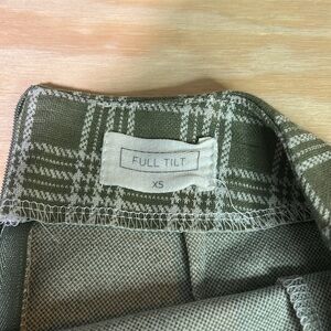 Full Tilt plaid skirt in green and white check. A-line silhouette with vertical seams. Size XS. Gently worn and in excellent condition. Great for fall, schoolcore, or casual wear, Twee core.