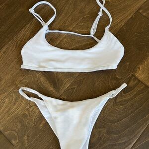 Stylish and comfortable white ribbed bikini set perfect for beach days. Enjoy a chic look with this elegant swimwear.
