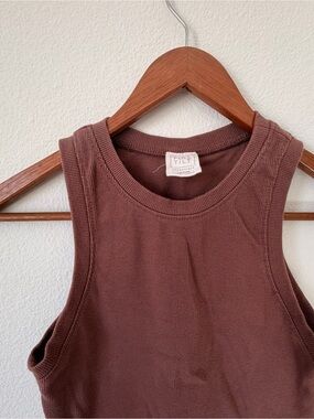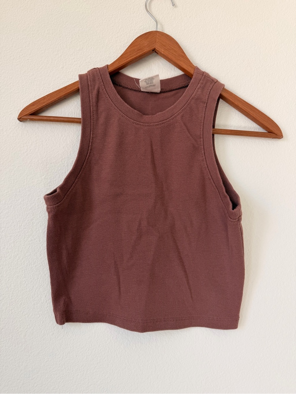 Full Tilt Ribbed Crop Tank in Rust-Brown