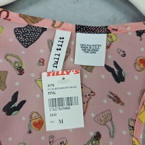 Full Tilt Tank Top Womens M Pink Allover Girly Print Chiffon Racerback Cute Fun