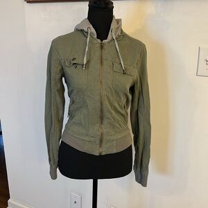 Full Tilt Versatile Cotton & Spandex Layered Hooded Jacket W/Zip Pockets, Sz. S. This pre-owned jacket is the perfect jacket to wear with jeans and boots. It is also perfect for rugged, casual events. It is very versatile. No flaws or damage. In excellent preowned condition. A beautiful addition to any closet!