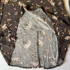 Full Tilt Women Blouse S Brown Floral Rayon V-Neck Pullover Cold Shoulder