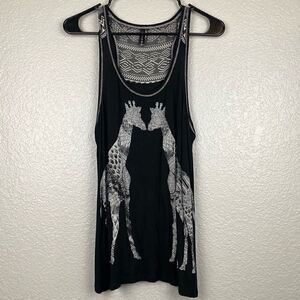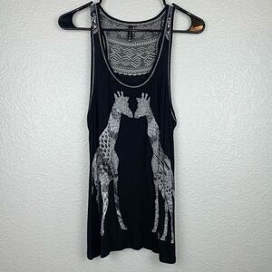 Full Tilt Womens Stretch Giraffe Print Scoop Neck Sleeveless Tank Top Large