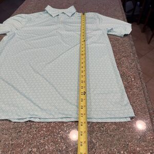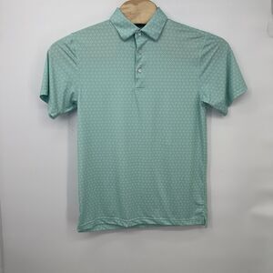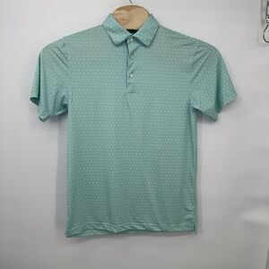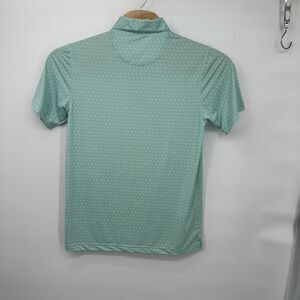 Full TurnThe Frisco Polo Mens S Floral Golf Summer Shirt permomanc style IS06808 aqua green denty floral stretchy golf shirt 3/4 button pull over shirt Note color is aqua green closer to the first pic way pretier in person .. little stretchy