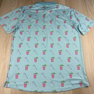 Full Wedge Golf Mens Aqua Blue Sip N’ Twirl Athletic Polo Golf Shirts Size 3XL