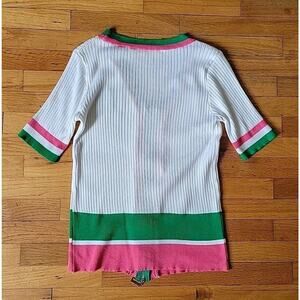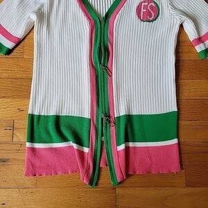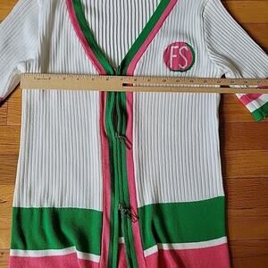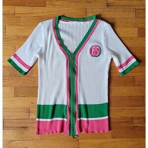 Full Zip Rib Knit Sweater Short Sleeve V Neck Academia Coquette Preppy Retro