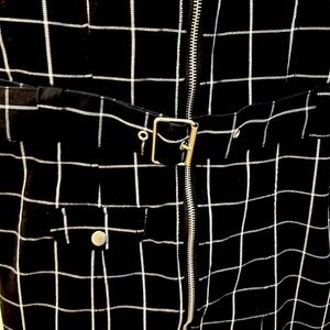 Pit 17, waist flat 16, length 25.5, adjustable buckle straps!