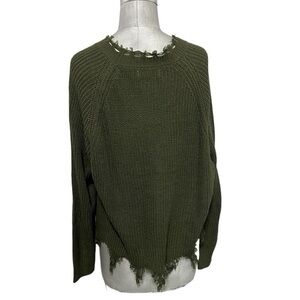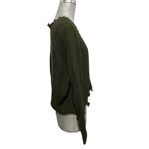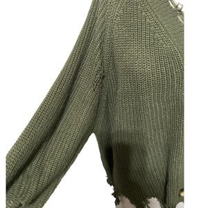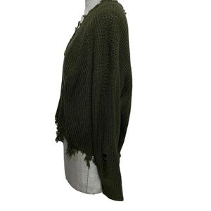Full circle Trends Hunter Green Distressed Shredded Button Cardigan Size Large