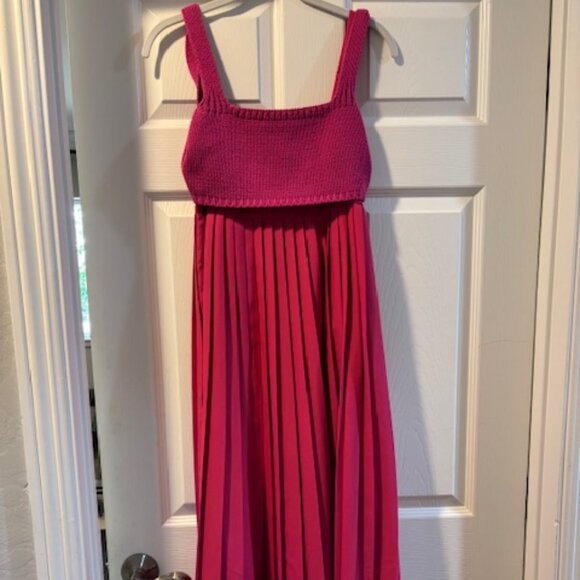 Fun and unique Mare x Anthropologie dress. Full length (I'm 5'4") or could be ankle/midi length. Pleated bottom with a unique knit overlay top. Spaghetti strap under and on knit layer. Worn once. This is a beautiful dress that gets you noticed!