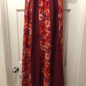 Red/purple floral and wine panels. Size L.